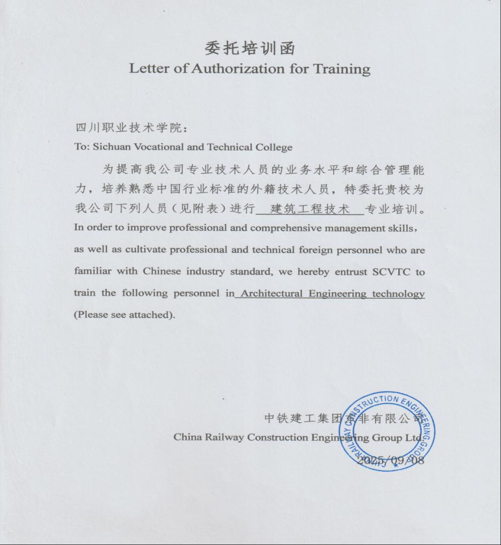 中铁建工集团此次委托培训的核心目标明确,即通过系统专业的教学,提升企业专业技术人员的业务水平能力,同时重点培养熟悉中国行业标准的外籍技术人员,为集团在国内外建筑领域的发展储备高素质专业人才。作为受托方,我院凭借在建筑工程技术专业领域的教学优势与职业教育经验,成为此次培训的承办单位,前期已围绕企业需求完成多轮筹备,全力保障培训工作有序推进。
