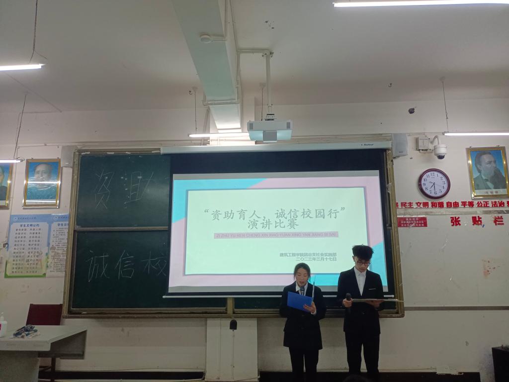 为认真贯彻党的二十大精神,使国家资助政策深入人心,培养广大学生诚实守信、自立自强的美好品质,2023年3月17日19:30,建筑工程学院团总支社会实践部在尚学楼A101举办以“资助育人,诚信校园行”为主题的演讲比赛。