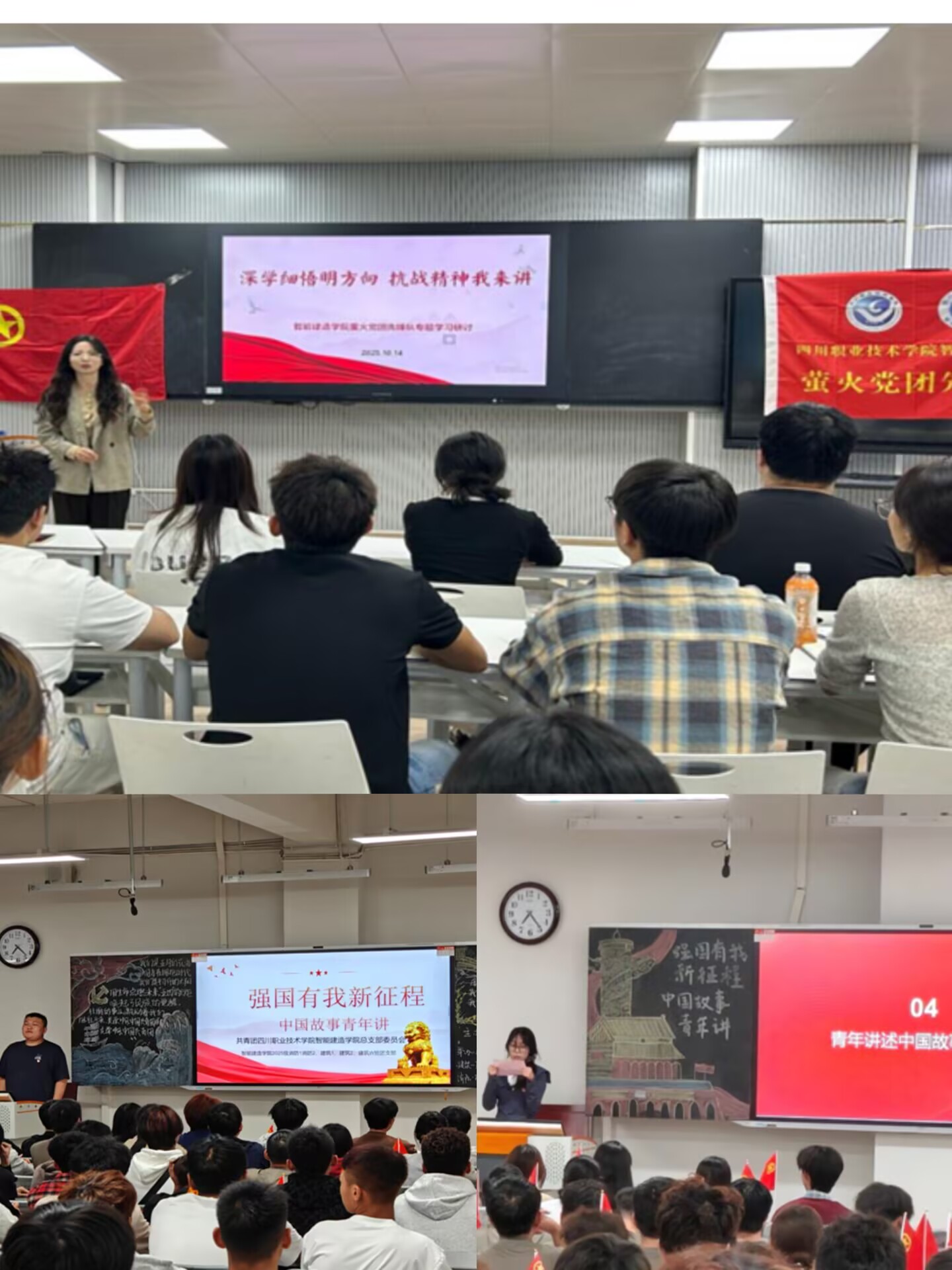 1014日,学院“萤火”党团先锋队开展“深学细悟明方向 抗战精神我来讲”主题团课暨学习研讨活动。团总支书记韦梦雪以“历史照亮未来,精神凝聚力量”为主线,通过纪录片片段、历史图片生动再现平型关大捷、百团大战等关键战役,深情讲述本地英烈“舍身护粮”“秘密传递情报”的感人事迹。课程紧密结合智能建造领域从“跟跑”到“领跑”的奋进历程,引导青年思考如何将抗战精神中的攻坚意志转化为专业学习与科技创新的动力,实现红色教育与专业成长的双向赋能。