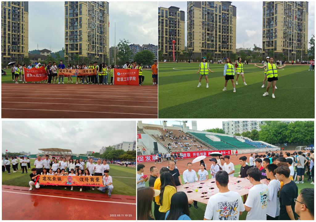 5月12日17:00,四川职业技术学院第六届大学生田径运动会暨教职工运动会正式落下帷幕。此次运动会经过激励角逐,建筑工程学院取得教工团体总分第八名、学生团体总分第三名的好成绩。同时教工团队、学生团队均获优秀组织奖。这是建筑工程学院全体人员不懈努力的结果,也是所有建工人携手奋进的见证。建筑工程学院必将继续秉承“为难为之为,成不成之成”校园精神,再攀高峰,缔造辉煌。(撰稿:向香源 审核:张振锋)