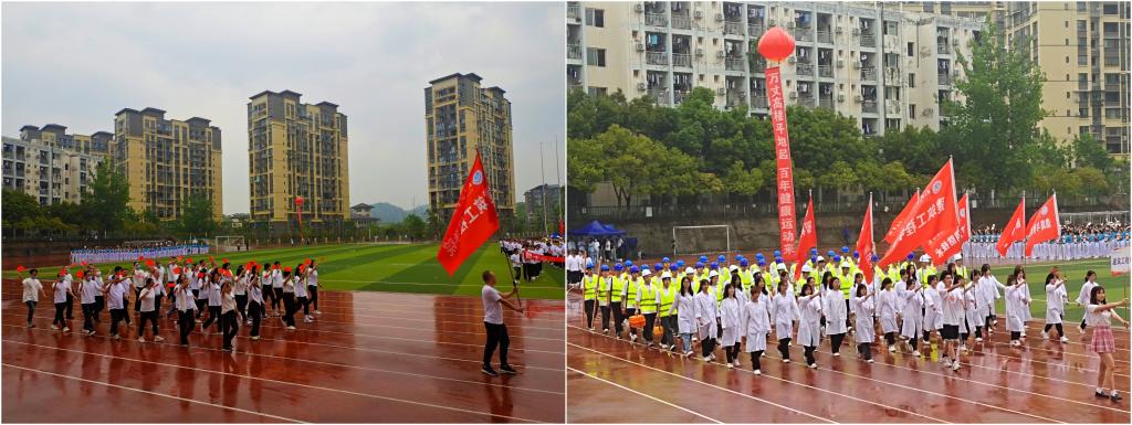 2022年5月11日,随着清晨的第一缕微风,在朦胧细雨中,四川职业技术学院第六届大学生田径运动会暨教职工运动会正式拉开帷幕。在观众的欢呼声中,建筑工程学院学生方队伴随着“青春如火,超越自我,树我雄风,谁与争锋,建工建工,王者之风”的口号声中,迈着矫健的步伐入场,展现了建工学子“拼搏创新,超越自我”的竞赛精神。